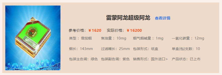 以上内容是由香烟网小编来收集以及整理的,关于古巴雪茄价格表图以及雷蒙阿龙超龙雪茄多少钱相关的内容,希望通过上述的内容能够更好的了解这款雪茄烟。